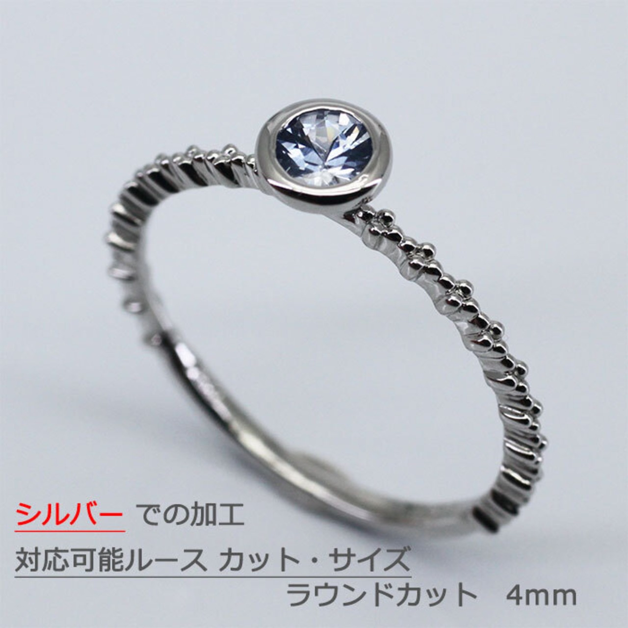 リング シルバーでの加工 amri-34533 加工可能ルースサイズ 4mm 腕デザインあり