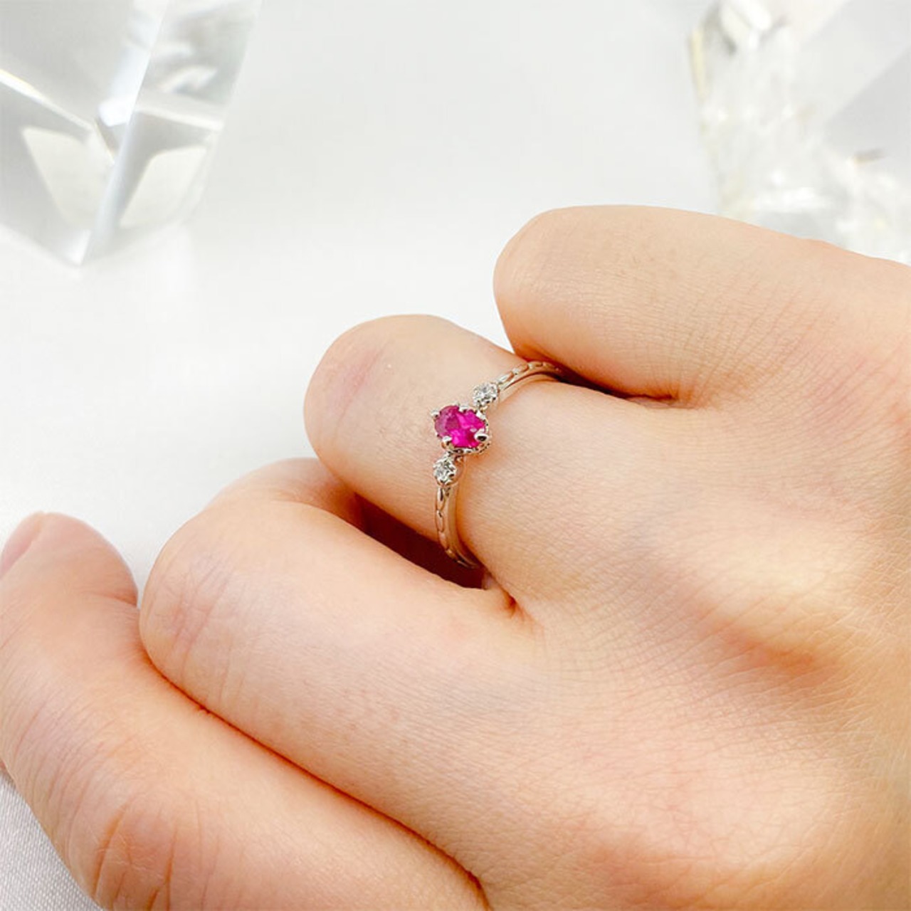 リング K10での加工 amri-30136 オーバルカット 加工可能ルースサイズ 3×5mm 加工 脇石ダイヤモンド付