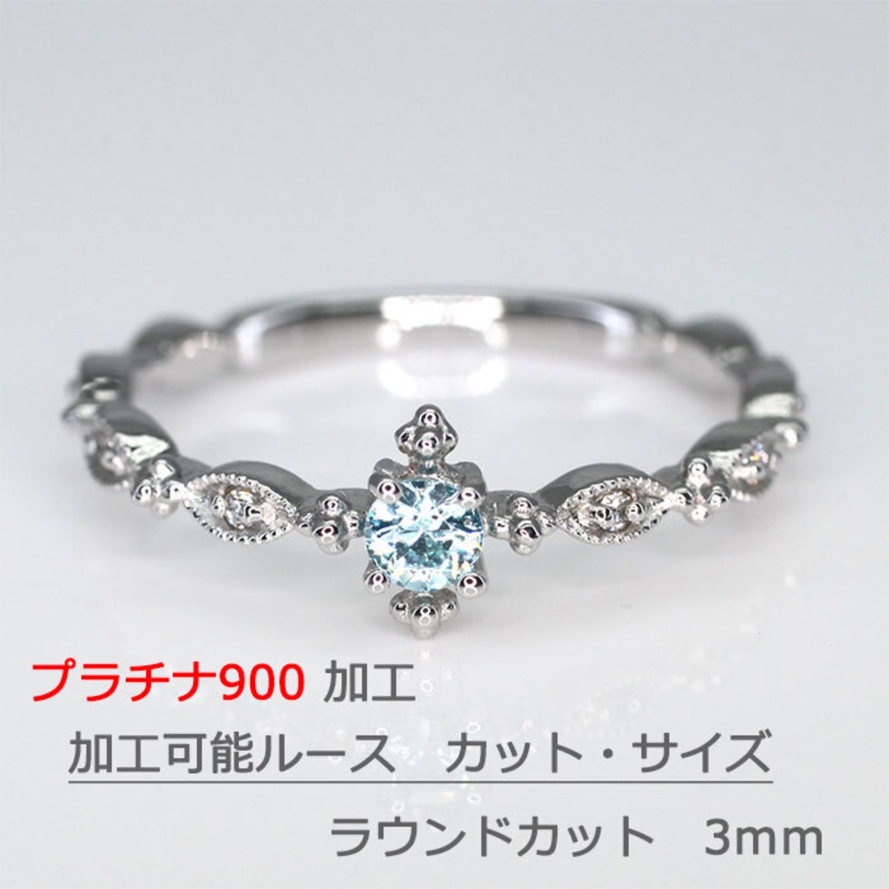 リング プラチナ900での加工 amri-19193 加工可能ルースサイズ 3mm 脇石ダイヤモンド 天然ダイヤモンド