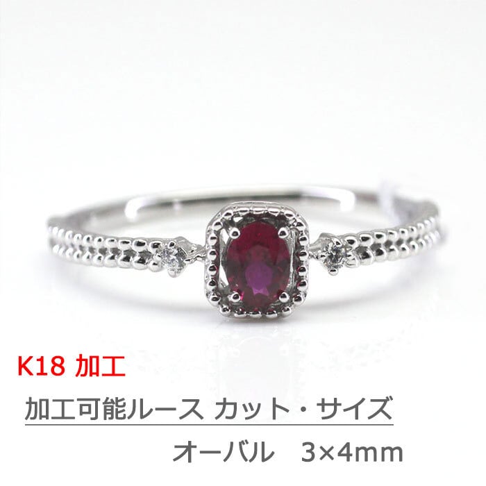 リング K18での加工 amri-35022 加工可能ルースサイズ 3×4mm オーバルカット 加工 ダイヤモンド付